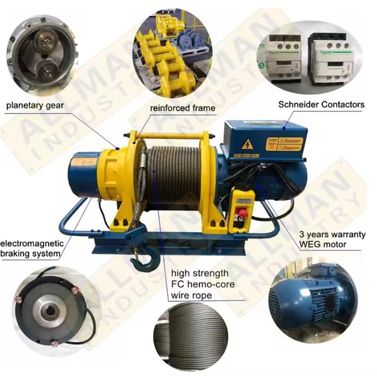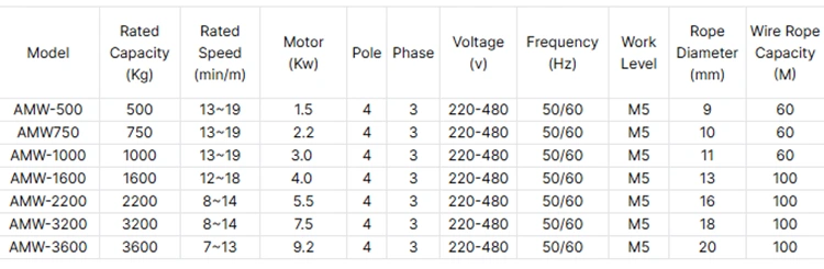 Chúng tôi có nhà máy riêng, sản xuất tời dây điện, công suất bao gồm 500kg, 750kg, 1000kg, 1600kg, 2 tấn, 3 tấn, 5 tấn và 10 tấn. Điện áp nguồn có thể là 220V, 380V, 440V cho khách hàng lựa chọn, cũng có thể chấp nhận tùy chỉnh.