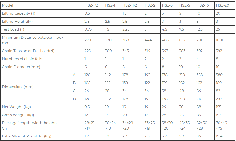 Nhà máy Hà Bắc BaiYi chất lượng caoPalăng xích tay loại HSZphân số nhiều loại, số loại gốc, chọn lớp, số mẫu kỹ thuật có sẵn để tham khảo: